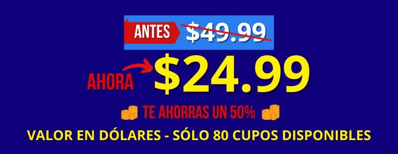 La Inscripción al curso volverá a $49.99 dólares cuando se agoten los cupos en Oferta o el reloj Marque Cero